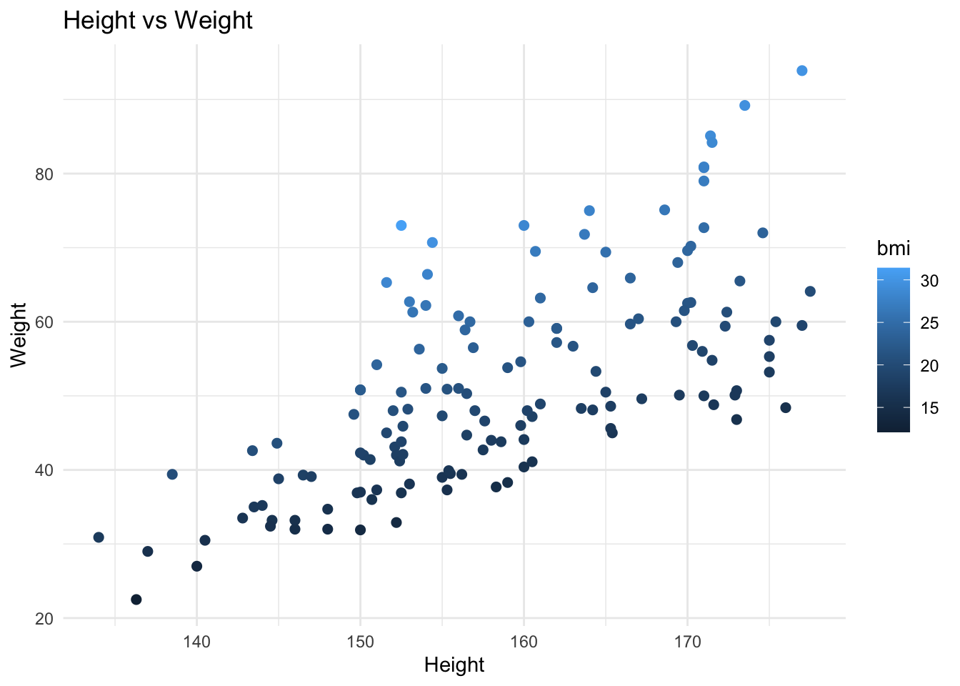 labs(x = "Height", y = "Weight", title = "Height vs Weight") +