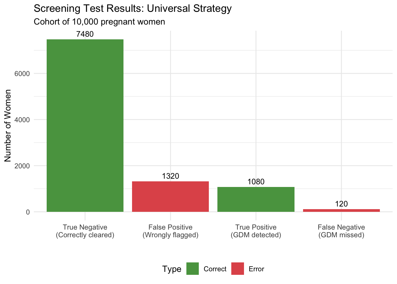 3. **No formal screening:** GDM detected only when symptomatic (status quo in many rural settings)