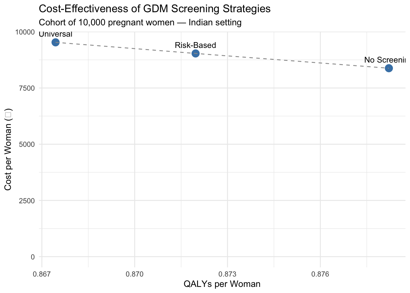 #| fig-cap: "Cost-effectiveness comparison of GDM screening strategies"