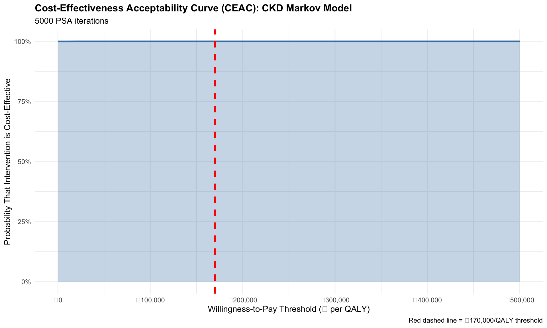 This is exactly what NICE, CADTH, India’s NITI Aayog, and all major HTA agencies ask for in your submissions. In Excel, each of these steps would have been cumbersome. In R, it is transparent, reproducible, and takes seconds.
