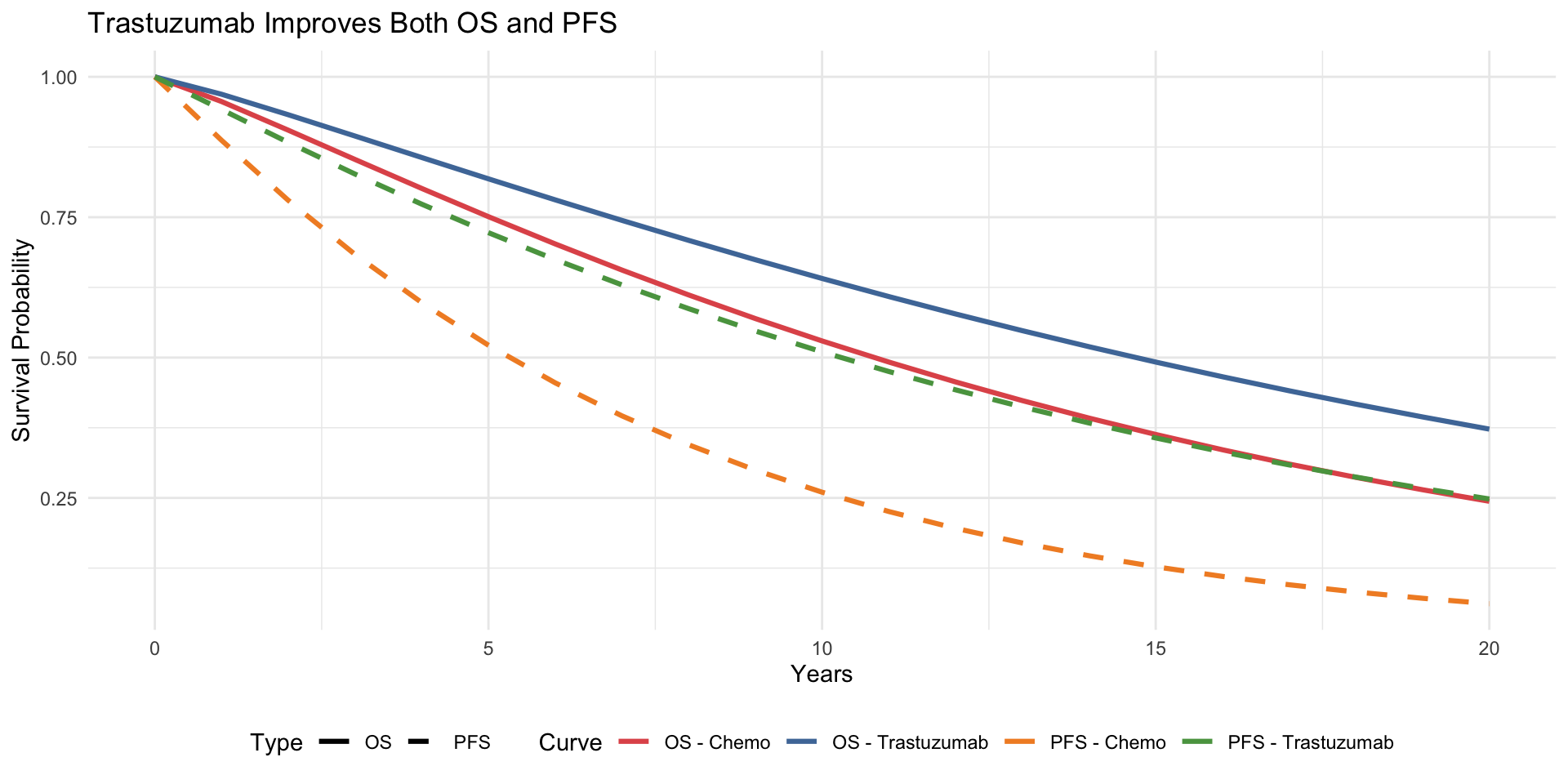 Curve = rep(c("OS - Chemo", "OS - Trastuzumab",